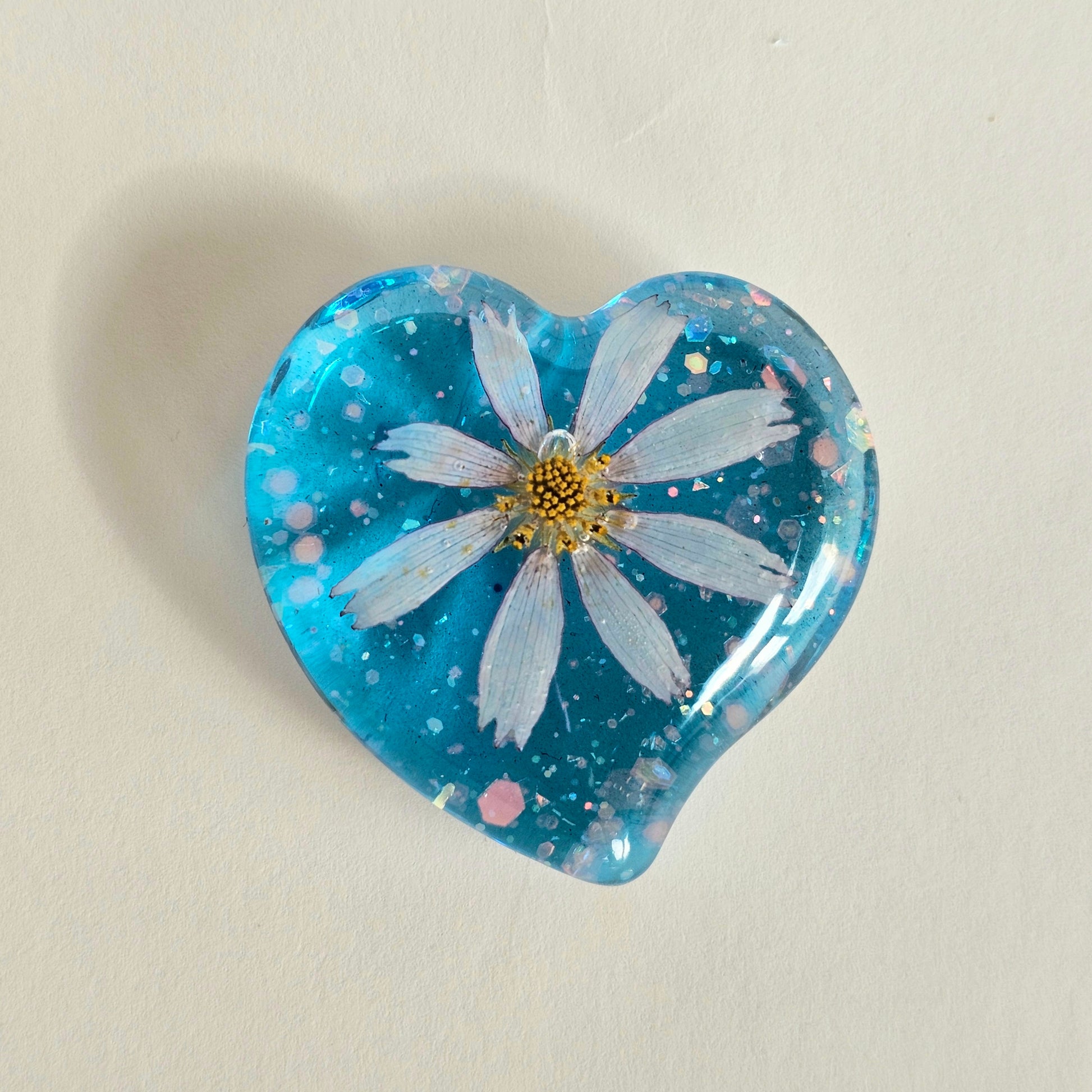 Small Resin Flower Heart Sky Blue (White Cosmos)